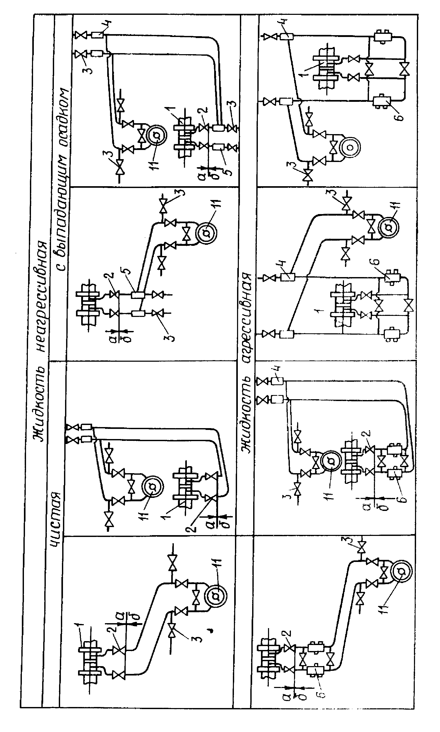 А) Типовые схемы импульсных линий при измерении давлений – 4 варианта.