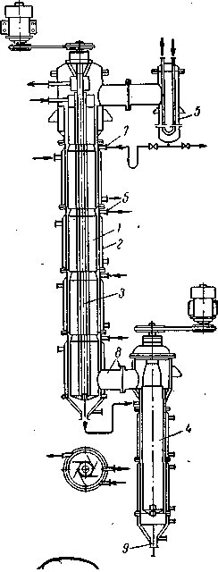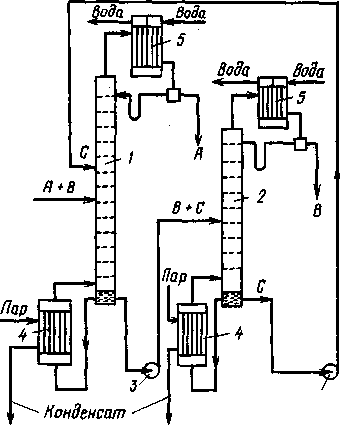 При достаточно большом числе ступеней таким путем можно получить жидкую или паровую фазу с достаточно высокой концентрацией компонента, которым она обогащается. Однако выход этой фазы будет мал по отношению к ее количеству в исходной смеси. Кроме того, описанные установки отличаются громоздкостью и большими потерями тепла в окружающую среду.