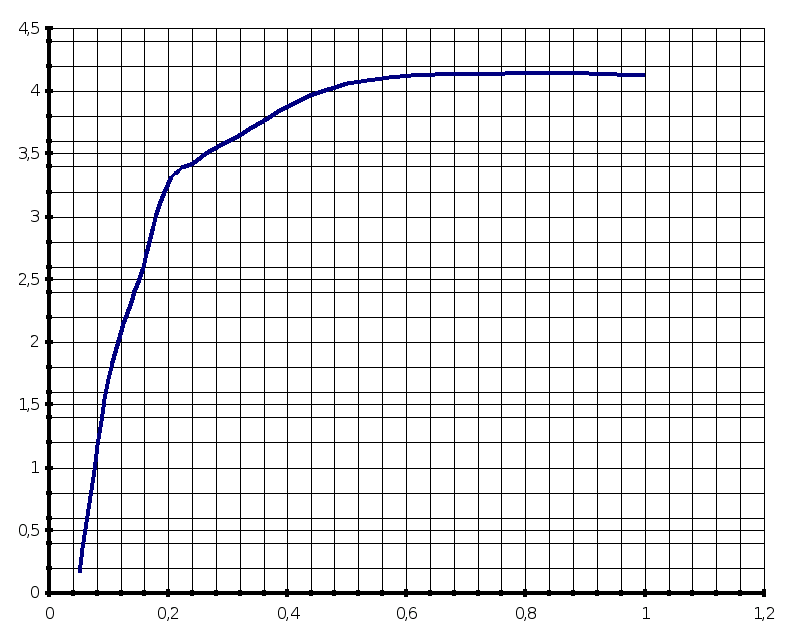 Используем в качестве входного сигнала напряжение источника постоянного тока G1. Плавно изменяя Uвх снимаем показания и строим график передаточной характеристики