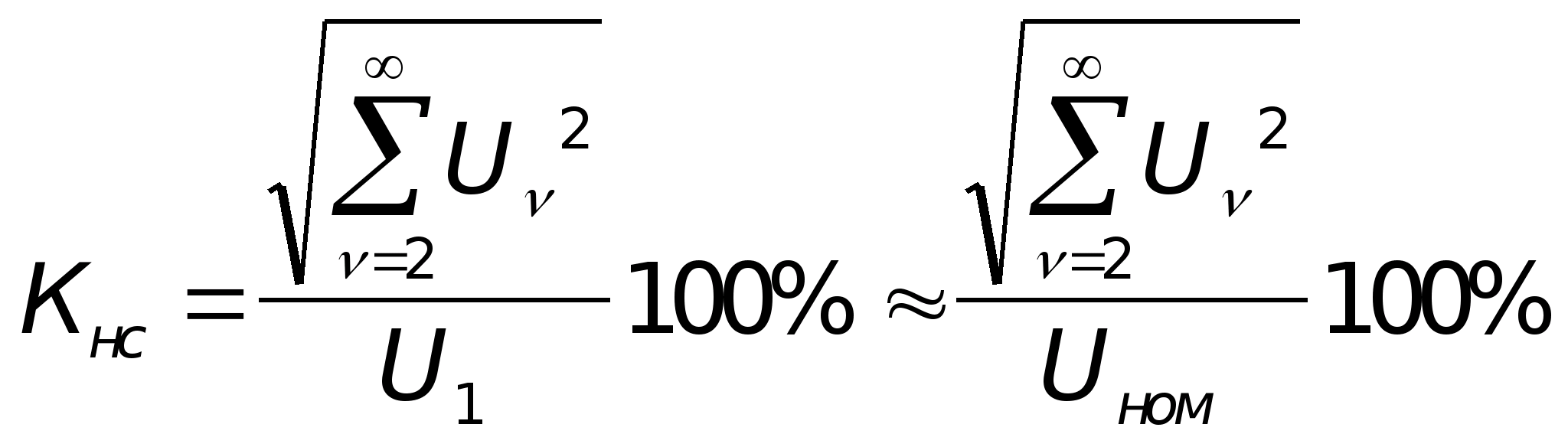Несинусоидальность напряжения сети характеризуется коэффициентом несинусоидальности (искажения) кривой напряжения, который определяется по формуле: