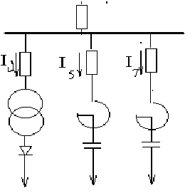 С увеличением частоты индуктивное сопротивление реактора увеличивается пропорционально номеру гармоники, а сопротивление батареи конденсаторов уменьшается обратно пропорционально номеру гармоники. На частоте одной из гармоник индуктивное сопротивление реактора звена фильтра становится равным ёмкостному сопротивлению батареи конденсаторов и в цепи звена фильтра возникает резонанс напряжений. При этом сопротивление звена Х>Ф,>>n> òîêó ýòîé ãàðìîíèêè ñòàíîâèòñÿ ðàâíû íóëþ è îíî øóíòèðóåò ýëåêòðè÷åñêóþ ñèñòåìó íà ÷àñòîòå äàííîé ãàðìîíèêè.