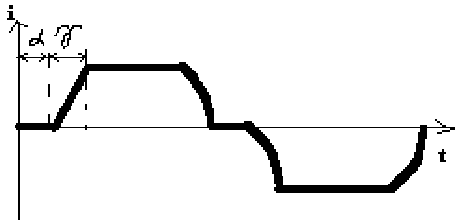Форма кривой зависит от угла управления a, задаваемого системой импульсно-фазового управления, и угла коммутации g.