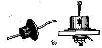 ехнология изготовления диода такова. На поверхности квадратной пластинки площадью 2-4 см в кв и толщиной в несколько долей миллиметра, вырезанной из кристала полупроводника с электронной проводимостью, расплавляют кусочек индия. Индий крепко сплавляется с пластинкой.При этом атомы индия проникают (диффузируют) в толщу пластинки, образуя в ней область с преобладанием дырочной проводимости рис 6 Получается полупроводниковый прибор с двумя областями различного типа проводимости,а между ними p-n-переход. Чем тоньше пластинка полупроводника. тем меньше сопротивление диода в прямом направлениии, тем больше выправленный диодом ток. Контактами диода служат капелька индия и металлический диск или стержень с выводными проводникамиПосле сборки транзистора его монтируют в корпус, присоеденяют эл. выводы к контактным пластинам кристалла и выводом корпуса и герметизируют корпус.