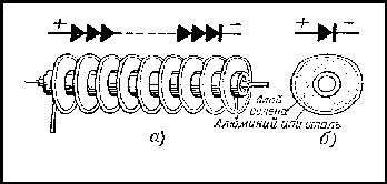 Существуют фото- и термо- резисторы и варисторы вид на рисунке. К плосткостным диодам относятся селеновые выпрямители.Основой такого диода служит стальная шайба , покрытая с одной стороны слоем селена, являющегося полупроводников с дырочной проводимостью вид на рис 7 . Поверхност селена покрыта сплавом кадмия, в результате чего образуется пленка обладающая электронной проводимостью, вследствии чего образуется переход выпремляющий ток.Чем больше площадь, тем больше выпремляемый ток.