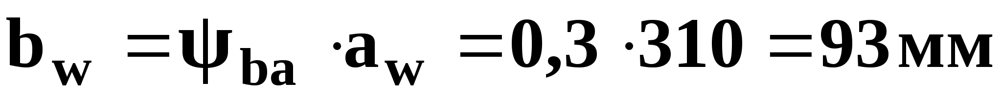 Для сталевої прямозубої передачі K>a>=495 МПа. З таблиці 8.4 [2] при HB<350 та при симетричному розміщенні коліс на валу маємо >ba>=0,3…0,5, виберемо >ba>=0,3. По рисунку 8.15 [2] крива V при > > знайдемо K>H>=1,03. Приймемо a>w>=310 мм, тоді > >. Приймаю b>w>=95 мм.