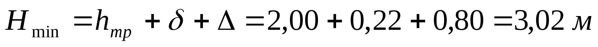 где Нвр – отметка верхней точки тальвега, равная 61,00 м;