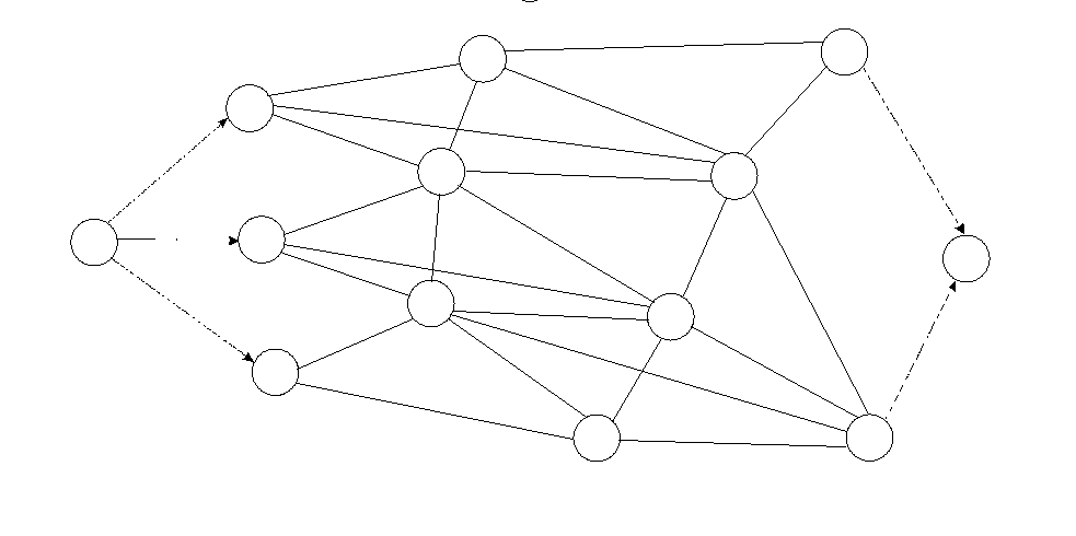 Постановка задачи: задана сеть с одним истоком Е>0> и одним стоком Е>12>, и промежуточными вершинами Е>1>-Е>11>. Каждому ребру поставлены в соответствие две величины: пропускная способность bij и дуговая стоимость Cij (стоимость доставки единицы потока по ребру Еij). Необходимо найти поток из источника в сток заданной величины В, обладающий минимальной стоимостью.