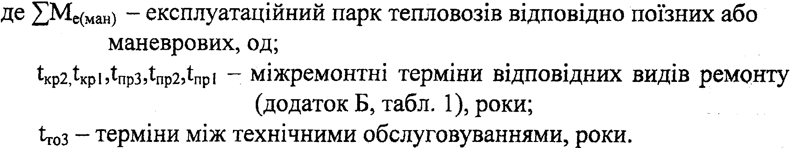 1.9 Програма ремонту поїзних і маневрових локомотивів визначається окремо за серіями локомотивів і видами руху. Програма технічного обслуговування і ремонту електровозів у вантажному русі розраховується згідно з загальним пробігом у межах обертання локомотивів і встановленими нормами пробігу між технічним обслуговуванням і ремонтами за формулами: