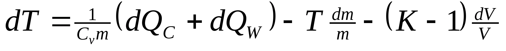 Уравнение энергетического баланса в цилиндре составлено на основе первого начала термодинамики для закрытой нетеплоизолированной системы: