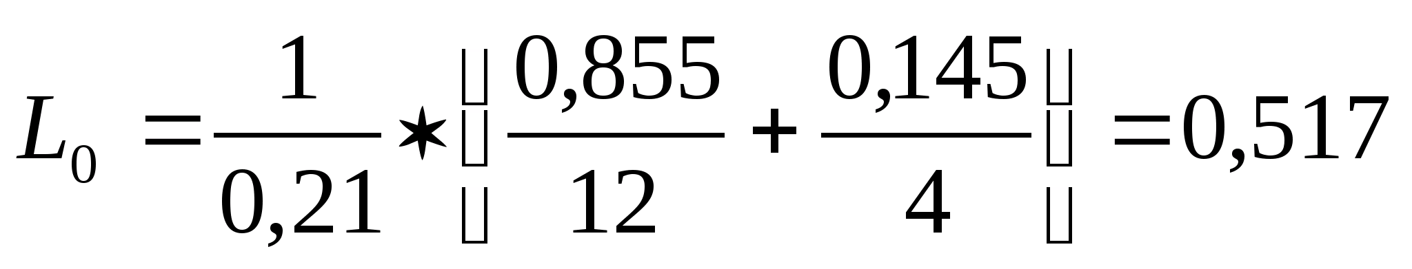 Количество горючей смеси: М>1> = L>o>+1/ m>т> = 0,960,516+1/115= 0,5050 кмоль.