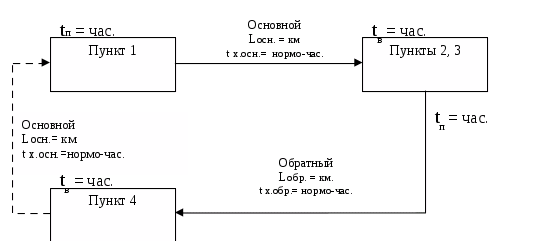 Задача экипажа состоит в сокращении фактических затрат времени на всем протяжении кругового рейса. Предварительно, при определении продолжительности кругового рейса вычерчивают схему с отражением на ней всех элементов, составляющих рейс:
