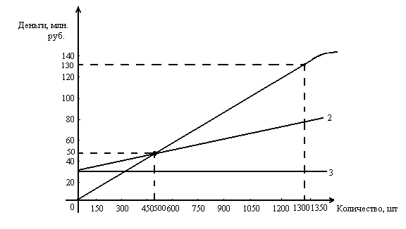 Таким образом постоянные издержки на нашем предприятии составляют –20 млн. рублей, переменные – 35 млн. рублей. Ожидаемая дополнительная выручка после внедрения системы качества составляет – 80 млн. рублей. Тогда точка безубыточности Рис.2 будет равна 5,2 месяцам, то есть расходы на внедрение и поддержание системы качества окупятся через 5,2 месяца.