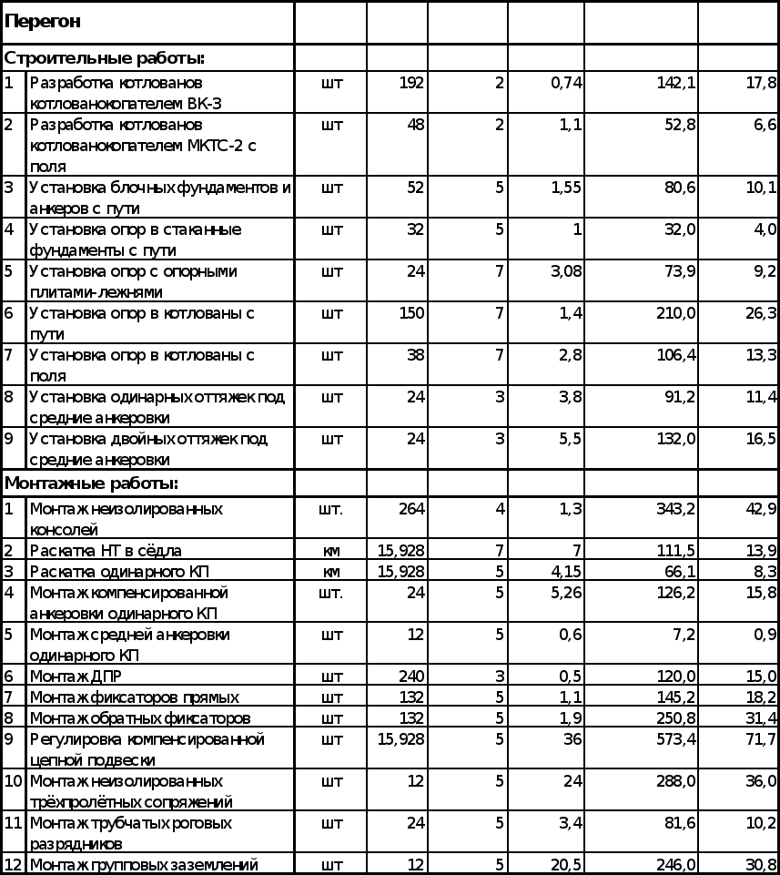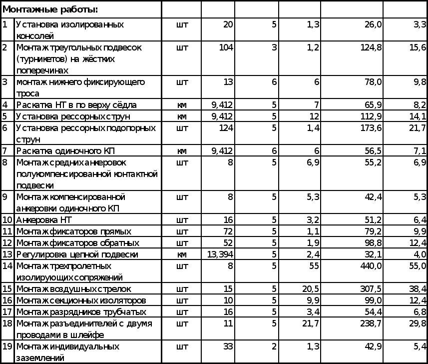 | 4 | Установка звеньевых струн | км | 9,88 | 5 | 7 | 69,2 | 8,6 | 5 | 1,7 | |||||||||||||||||||||||||||||||||||||||||||||||||||||||||||||||||||||||||||||||||||||||||||