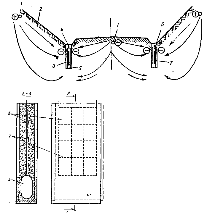 Закрытый дренаж электроосмотической конструкции (рис. 14) основан на принципе перемещения воды от положительного электрода к отрицательному и рекомендуется для т