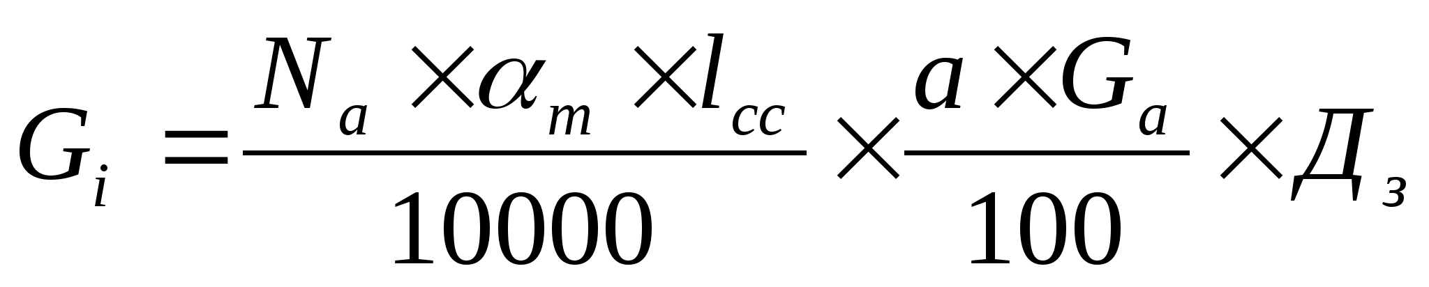 Абсолютные значения нормативных показателей определяются произведением соответствующего приведённого удельного показателя на списочное число подвижного состава, одинакового по классу или грузоподъёмности [4, c.156]:
