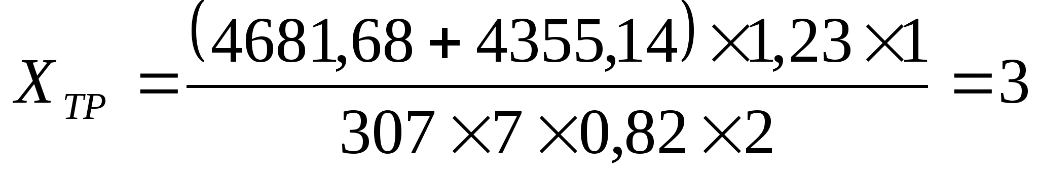 где Р, Х – соответственно общее число производственных рабочих и рабочих постов для условий проектируемого АТП; S>п>, S>а>, S>с>, S>т> – соответственно общая площадь производственно-складских, административно-бытовых помещений, стоянки и территории для условий проектируемого АТП.