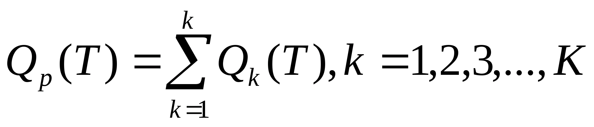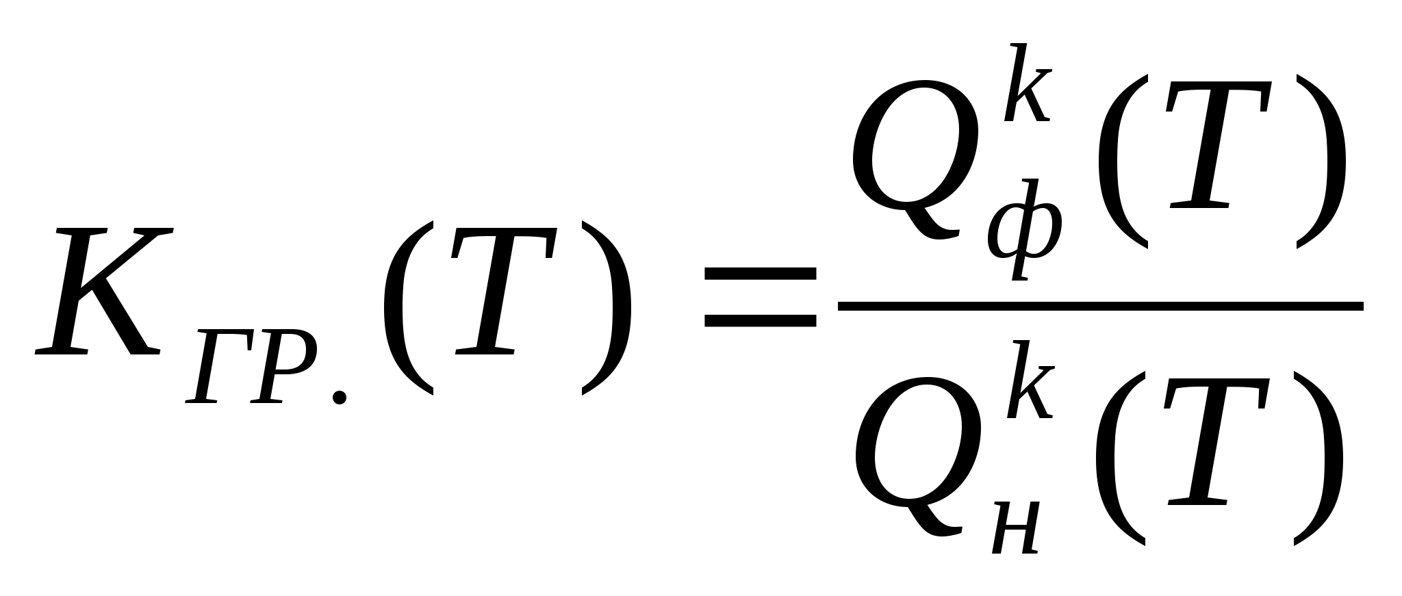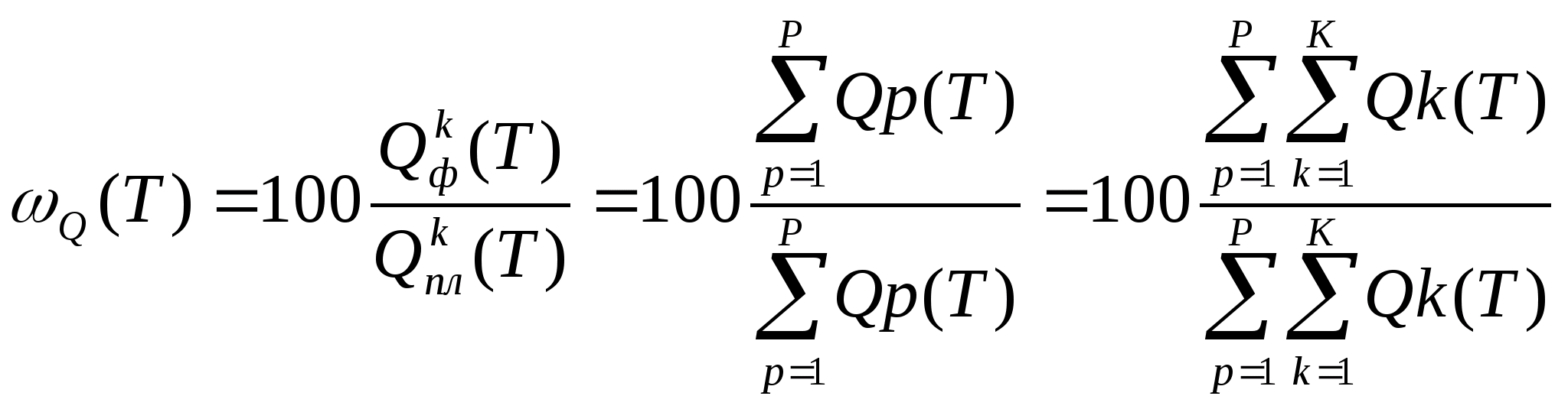 При этом показатели Q>р>(Т) и Q>р>(Т) с целью характеристики плана и степени использования каждого типоразмера контейнера определяются как сумма соответственно договорных плановых Q>k>(Т) и фактических Q>k>(Т) объемов продукта, доставляемых каждым инвентарным k-ым типом контейнера.