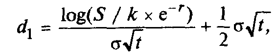где С – премия опциона "колл", S – курс исходного актива, rf – процентная ставка исходного актива, T-t – число дней, N(d) – функция суммированной плотности нормального закона: