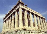 Парфенон - жемчужина Акрополя. Возведенный в середине V в. до н.э., он уже тогда стал символом города, а позднее и всей Эллады. Парфенон ("пристанище целинных") начали строить еще в VI веке до н.э. Он претерпел заметные разрушения во время нашествия персов в 480 г. до н.э. Парфенон представлял собой храм, окруженный со всех сторон колоннадой: с фасадных сторон по 8 колонн, с продольных по 17. Внутри помещение храма разделялось глухой стеной. В западной его части помещались первоначально предметы культа, а позже государственная казна, в восточной части находилось помещение со статуей богини Афины. Возводятся Пропилеи. Строятся храмы Бескрылой Афины-Победы (Ники Аптерос) и Эрехтейон. В центре утеса к этому времени уже возвышается величественная двенадцатиметровая статуя Афины работы Фидия - одно из семи чудес света. В 334 г. до н.э. Александр Великий, собравший под свои знамёна всех эллинов, совершил в Парфеноне возлияние богам за победу на реке Гранике. В эллинистические времена Деметрий Полиоркет превратил Парфенон в свой дворец, где устраивал свои знаменитые пиршества и оргии. В 160 г. до н.э. Герод Аттик возводит у подножия скалы Акрополя театр Одион. В византийские времена Парфенон был превращён в христианский храм - сначала Святой Софии, а позднее - Пресвятой Афинской Богоматери. Эрехтейон также стал храмом Богоматери. В Пропилеях разместились храмы Пресвятой Троицы и Архангелов Михаила и Гавриила. Затем наступила череда захватов, войн и разрушений. Первыми захватчиками были франки. С приходом католиков Парфенон становится католическим храмом Санта Мария де Афины. В 1456 г. Акрополь захватывают турки. За последующие четыре века турецкого владычества утёс претерпел наибольший урон. Парфенон турки использовали как пороховой склад, и взрыв уничтожает значительную часть здания. Эрехтейон превратили в гарем. Храм Ники разрушили, чтобы использовать его мрамор для укрепления стен. Однако великий храм так прекрасен, что даже враги не смогли устоять перед его красотой. Английский лорд Томас Брюс Элгин оказался по отношению к Парфенону более безжалостным, чем турецкий генерал. Он был назначен послом Великобритании в Константинополе в 1799 году. Пользуясь тем, что Великобритания и Турция как раз заключили военный союз, Элджин получил в 1801 году от турецких властей разрешения послать группу мастеров с целью детального описания Парфенона, якобы для того, чтобы построить себе дворец по этому образцу. Однако рабочие занялись не описанием храма, а демонтажем скульптур Парфенона. С фронтона храма откалывают целые куски бесценного мрамора, из храма Эрехтейон грубо выламывают колонну и одну кариатиду (колонну в виде женской фигуры). Разграбление Парфенона длилось десять лет, с 1801 г. по 1811 г. Грузовые суда лорда Элджина совершили в общей сложности 33 рейса из порта Пирей на Мальту и оттуда в Лондон. Иными словами, это была не единичная кража, а систематическая и хорошо отработанная операция. В 1816 году британское правительство купило у Элгина фрагменты Парфенона на аукционе, который специально для этого и спровоцировало. Это было незаконно, так как по Венской конвенции 1815 года Великобритания должна была вернуть фрагменты Турции. Чтобы избежать этого, коллекцию лорда Элджина объявили "частной". После обретения в 1830 г. независимости Греция неоднократно обращ