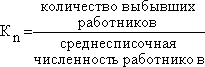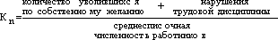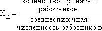 Коэффициент оборота по приёму (К>n>) Коэффициент оборота по выбытию (К>в>) Коэффициент текучести кадров (К>т>) Коэффициент постоянства кадров (К>пост>) |
