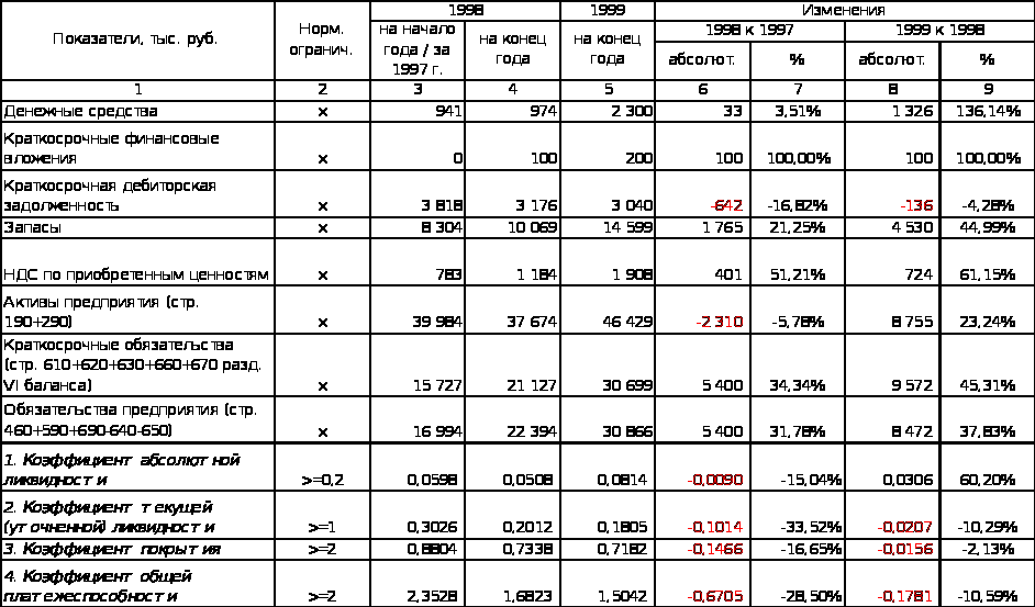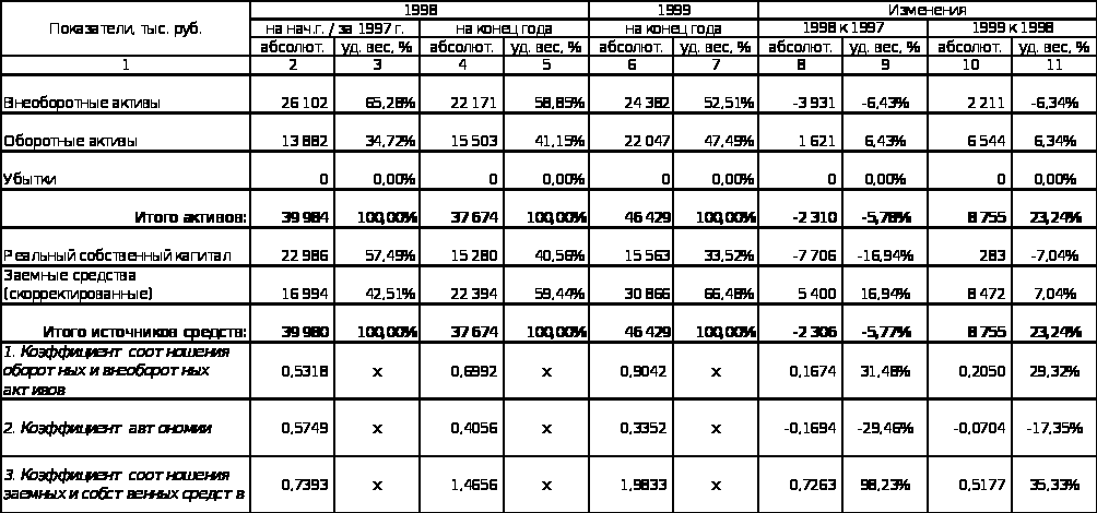 Анализ финансового состояния предприятия на основании данных бухгалтерской отчетности за 1998-1999 гг. позволяет сделать вывод о том, что в структуре источников средств значительную долю занимает кредиторская задолженность. Такая ситуация крайне рискованна, т.к. ставит предприятие в жесткую зависимость от финансового положения своих контрагентов, а также делает его очень чувствительным к изменениям во внешней среде, что негативно сказывается на платежеспособности.