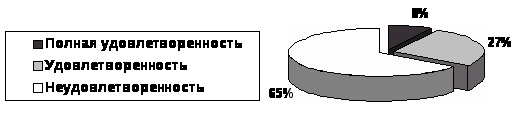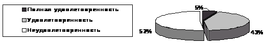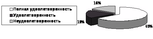 Полностью удовлетворены данной категорией всего лишь 5% опрошенных, 43% удовлетворены данной категорией, однако имеют определенные трудности в использовании своих знаний, умений и навыков. Особое внимание следует обратить на то, что более половины опрошенных –52% не удовлетворены данной категорией, т.е. при выполнении работы они не испытывают чувства успеха и удовлетворенности за свой труд.