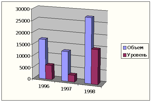 Анализ производственной программы. План по объему в 1997 году по сравнению с 1996 годом выполнен на 75,4 %, а в 1998 году по сравнению с 1997 годом на 216,9 %.