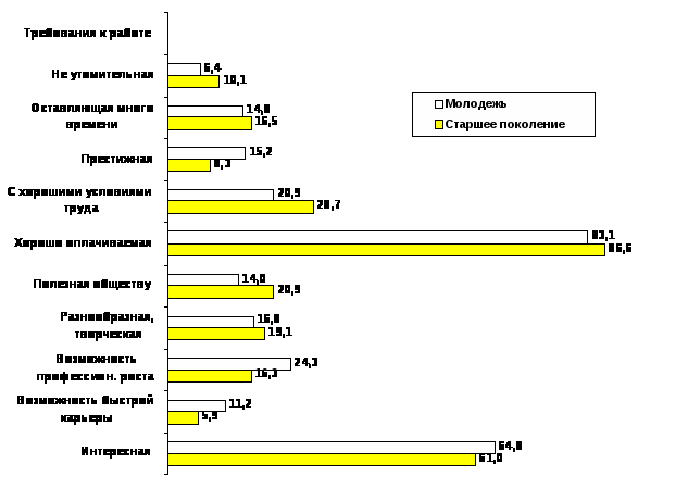 Ориентация молодежи на создание собственного благосостояния посредством реализации своих трудовых мотиваций. Основное – все же не социальная защищенность молодежи государством и не достижение высокого уровня жизни путем занятости в коммерческой (как правило, торгово-посреднической) сфере, а создание государством механизма реализации профессионального трудового потенциала молодежи в тесной связи с возможностями динамического роста благосостояния. Ориентация на формирование среднего класса в нашей стране, т.е. прежде всего на работников-профессионалов с достойным материальным достатком.