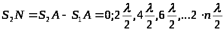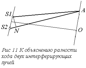 Объясняется, в каких местах интерференционной картины будут максимумы и минимумы света (рис.9.). Записывается разность хода двух лучей и условия усиления и ослабления света. При