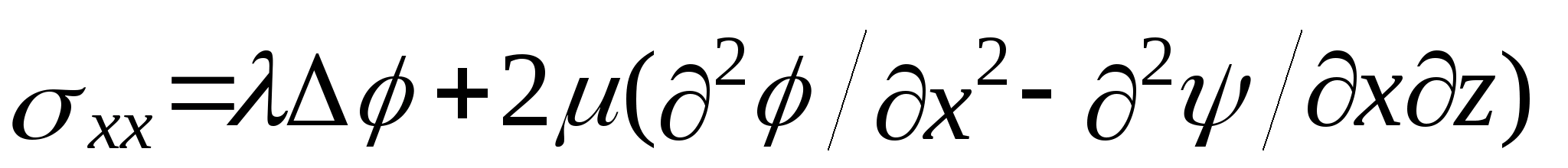 Используя эти выражения и закон Гука для изотропного тела, можно записать отличные от нуля компоненты тензора напряжений: