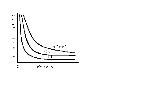 Зависимость одной характеристики состояния вещества от другой при постоянной температуре называется изотермой. Изотермы, найденные Бойлем и Мариоттом, похожи на гиперболы. На графике видно несколько гипербол: каждая из них соответствует своей температуре, причем та гипербола, которая получена при более высокой температуре, располагается выше. Это наблюдение выражается вторым газовым законом, который установил французский ученый Шарль в 1787 году: объем газа при постоянном давлении пропорционален его температуре.