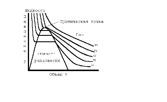 Если температура газа намного превышает критическую, то на диаграмме Эндрюса изотермы представляют собой почти идеальные гиперболы. По мере приближения ее к критической температуре изотермы начинают все более отклоняться от гипербол, и эти отклонения говорят о все большем отличии состояния вещества от идеального газа, все большей близости его к превращению в жидкость.