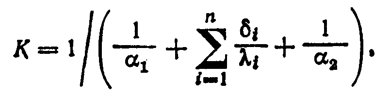 При расчетах коэффициента теплопередачи в случае многослойной стенки необходимо учитывать термические сопротивления всех слоев. В этом случае коэффициент теплопередачи определяют по формуле
