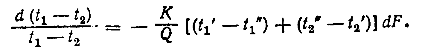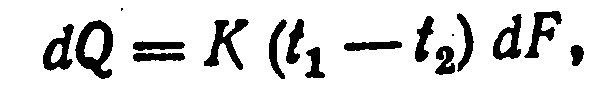 где К—коэффициент теплопередачи; t>1> и t>2>—температуры теплоносителей по обе стороны элемента dF.
