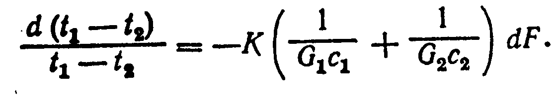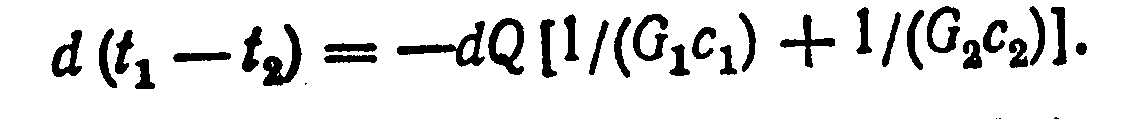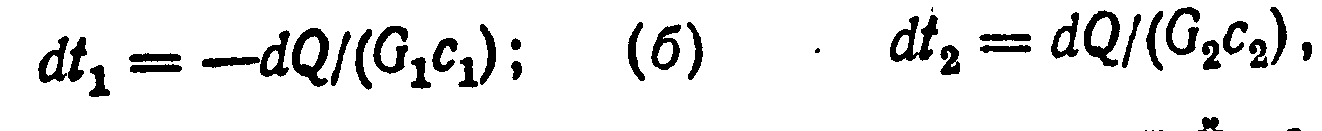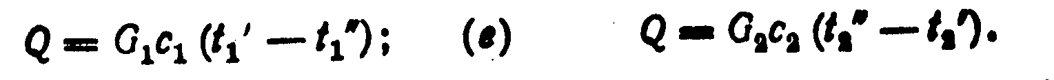где G>1> и G>2>—расходы первого и второго теплоносителей; c>1> и с>2>—теплоемкости первого и второго теплоносителей.