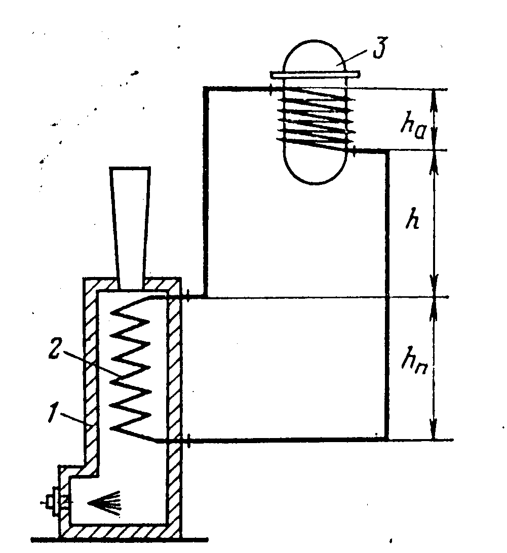 где H==h+0,5(hа+hп); h—высота, определяющая положение обогреваемого аппарата над печью, м; р>х> и р>г>—плотности теплоносителя соответственно в холодной и горячей ветви системы, кг/м3