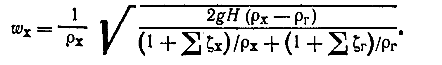 где w>х> и w>r > — линейная скорость теплоносителя соответственно в холодной и горячей ветви, м/с; >x> и >г> — сумма сопротивлений соответственно холодной и горячей ветви.