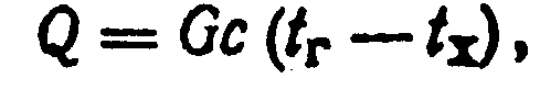 где G—скорость циркуляции теплоносителя, кг/ч; с—теплоемкость теплоносителя, кДж/(кгС)', t>r>—температура теплоносителя в горячей ветви системы (до обогреваемого аппарата), С; t>x>—температура теплоносителя в холодной ветви системы (после обогреваемого аппарата), °С.
