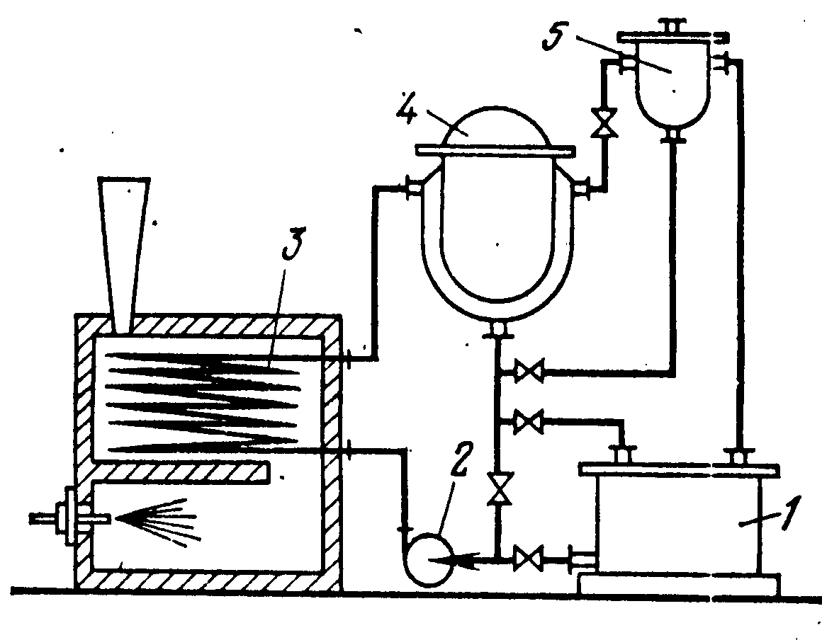 Принципиальная схема установки с естественной циркуляцией жидкого теплоносителя показана на рис. 3. Жидкий теплоноситель нагревается в змеевике 2