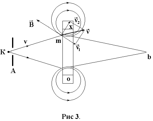 б) Движение в неравномерном поле. Если магнитное поле неравномерно, например сгущается ( рис.2 в.), то при движении по спирали электрон будет попадать в точки поля, где индукция В увеличивается. Но чем больше индукция В, тем при прочих равных условиях меньше радиус спирали r. Дрейф электрона будет происходить в этом случае по спирали со всем уменьшающимся радиусом. Если бы