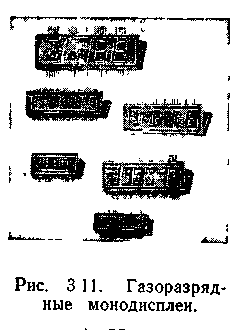 Имеется много разновидностей сегментных ГРИ, но все они однотипны с описанным прибором. Типичные значения высоты знаков составляют 5... 16 мм, число разрядов 3 ... 9. Для питания необходимо напряжение постоянного тока 170 ... 200 В.