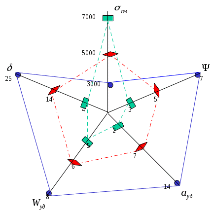 Анализируя полярную диаграмму полученных характеристик для трёх марок стали, мы выразили такую связь в виде формулы