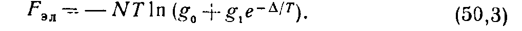 где g0,g1,—кратности вырождения компонент дублета, Δ—расстояние между ними. К свободной энергии соответственно прибавится «электронная» часть, равная
