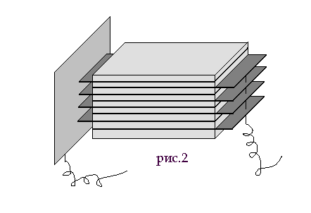 В этом патенте для нас наибольший интерес представляют «конденсаторы особых типов» в виде стопки (блока) металлических пластин (или полосок фольги) с находящимися между ними изоляционными слоями (пластинами), при этом четные металлические пластины (полоски фольги) соединены между собой общим проводником, а нечетные другим (рис. 2). П.Н.Яблочков указывает, что такие блоки можно соединять друг с другом параллельно или последовательно. Блочная (пакетная) конструкция, предложенная им, впоследствии нашла широкое применение.
