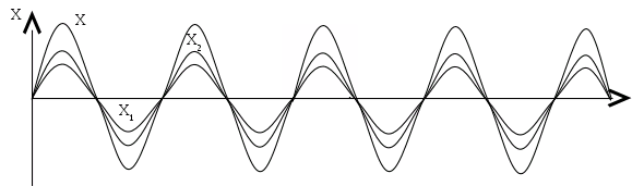 При φ>1 >– φ>2 >= 2кπ , (к = 0,1,2,…) Х>0> = 2Х>01> – колебания усиливаются.