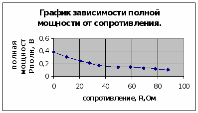 Полная мощность является суммой полезной мощности и мощности, выделяющейся на внутреннее сопротивление: