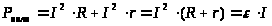 Рассмотрим также замкнутую электрическую цепь с точки зрения развиваемой источником мощности. Как известно, мощность, выделяемая в виде тепла при прохождении электрического тока через сопротивление, определяется законом Джоуля-Ленца: