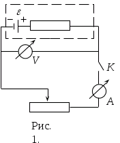 через источник тока и вольтметр всё же течёт некоторый малый ток, который вызывает падение напряжения на внутреннем сопротивлении источника, и поэтому показания вольтметра будут несколько меньше величины .
