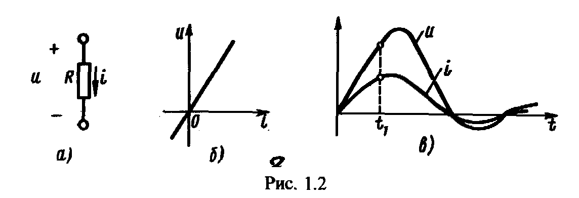 Условное графическое обозначение резистивного элемента Представлено на рис. 1.2, а, где указаны принятые положительные направления напряжения и тока.