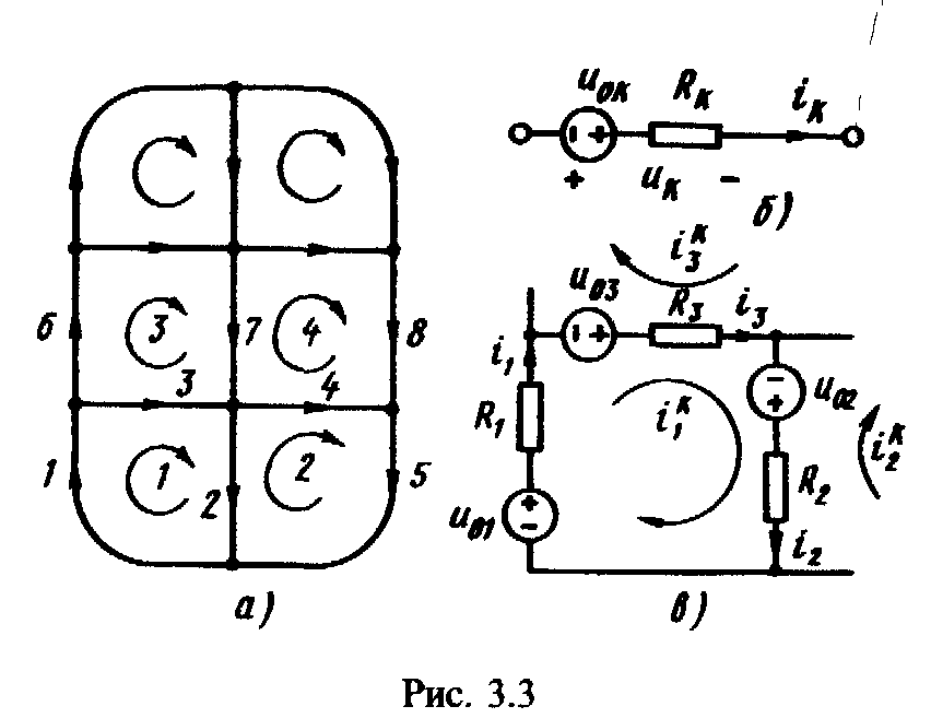 1) уравнений элементов, связывающих ток и напряжение каждого элемента, а также заданные напряжения. Уравнения элементов не зависят от схемы и геометрической конфигурации цепи, в которую входят элементы;